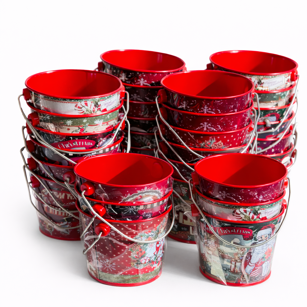 Dostupné farebné prevedenie : plechové vedierko s motívom Mikuláš a Vianoce – mix motívov